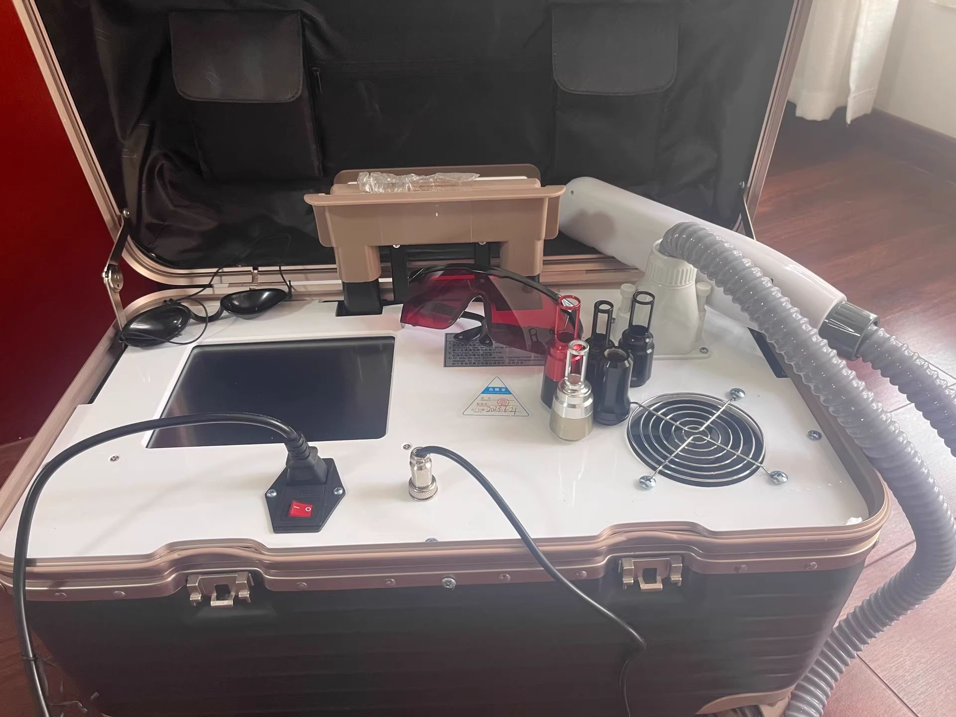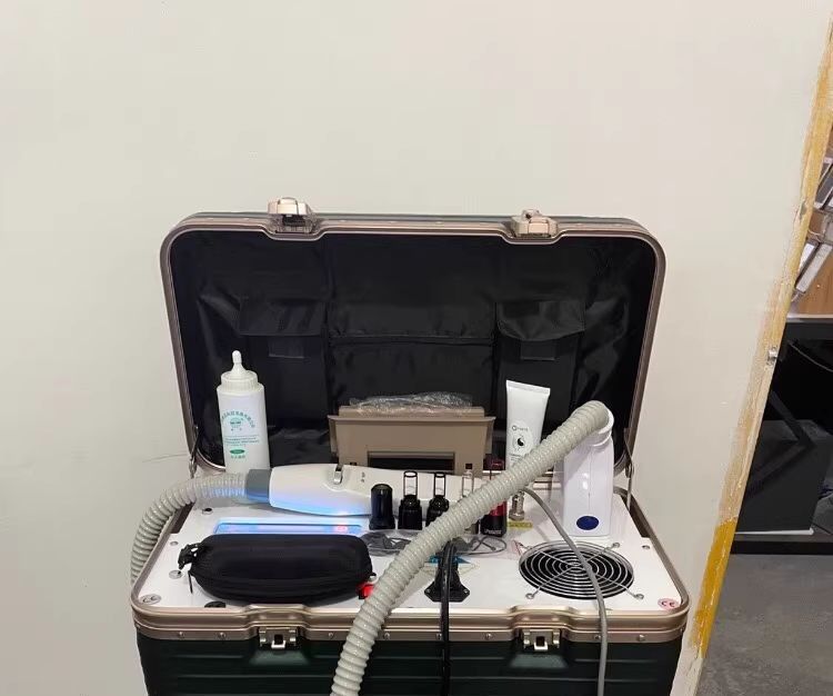 - * 【Alles-in-Einem Tragbarkeit mit Rollkoffer】Das schlanke, leichte Design des Rollkoffers ermöglicht mühelosen Transport, ideal für mobile Schönheitsprofis, Kliniken oder den Heimgebrauch. Bewegen Sie es nahtlos zwischen Räumen oder nehmen Sie es unterwegs mit – ohne Aufwand. Kein schweres Heben, nur geschmeidige Mobilität.