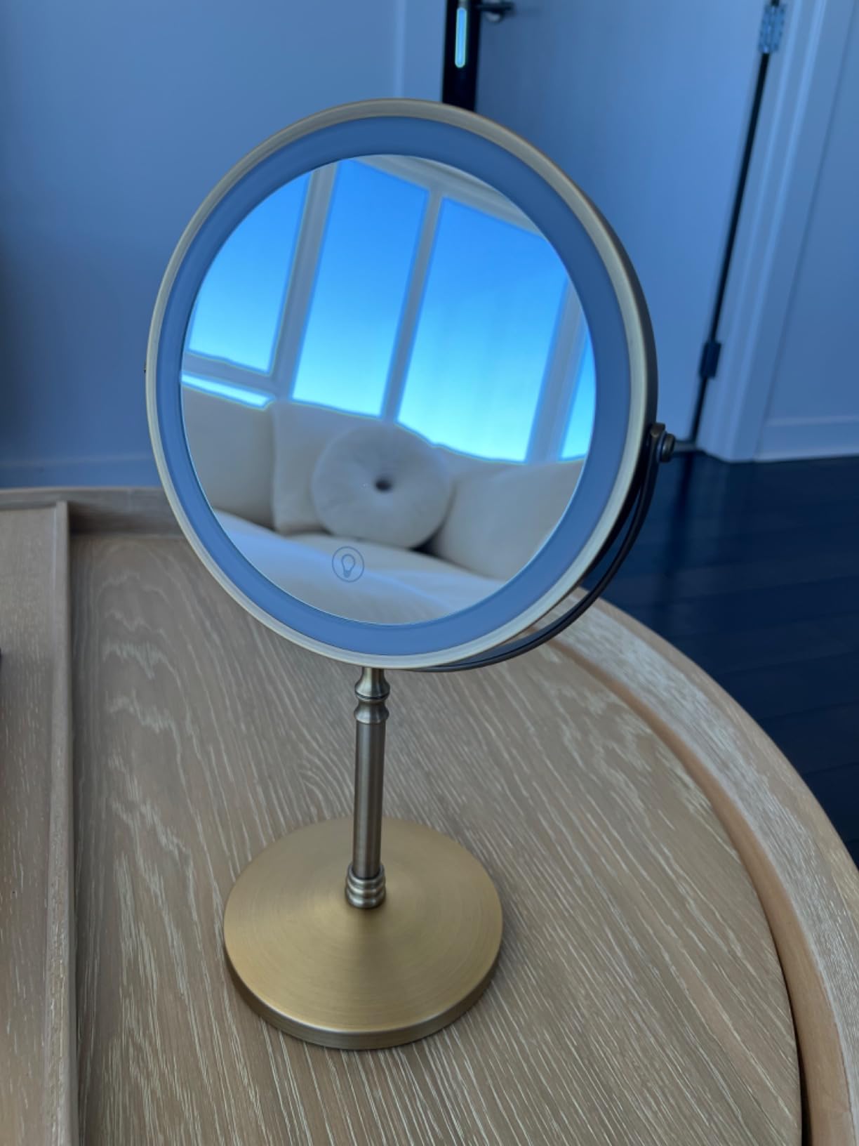 Ich habe diesen Spiegel gekauft, nachdem ich einen in einem Hotel benutzt hatte, und ich liebe ihn. Er hat 3 Lichteinstellungen und die Vergrößerung ist großartig.