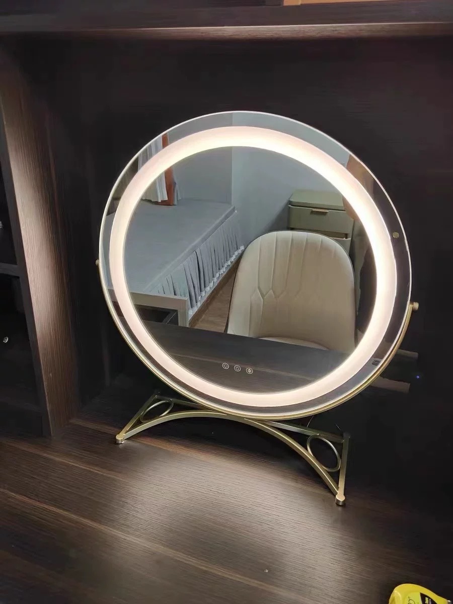 Runder Kosmetikspiegel, 50cm groß, für Schminktisch, 3 Lichtmodi, einstellbare Helligkeit, 360° Drehung, Aufladen per Stecker, Weiß