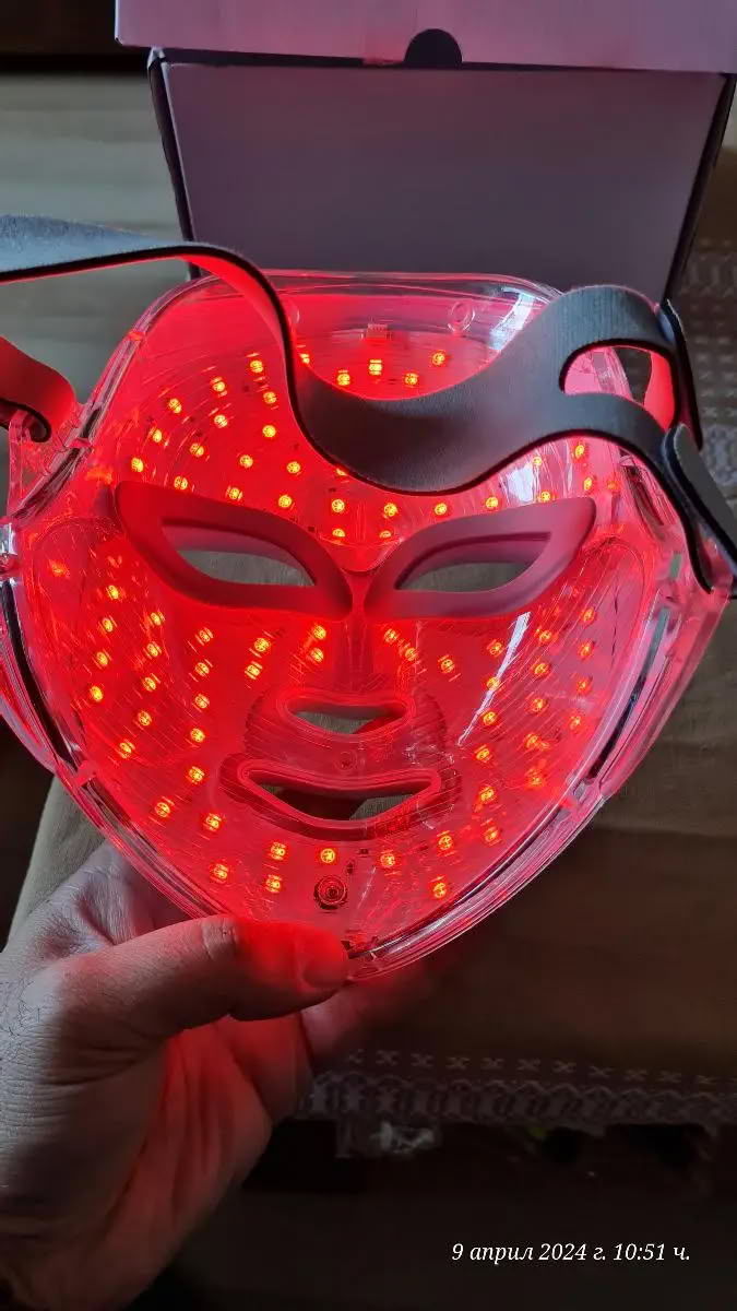 Lichttherapie-LED-Gesichtsmaske, 7-Farben-Lichtbehandlung, 90 LED-Perlen, wiederaufladbar über USB
