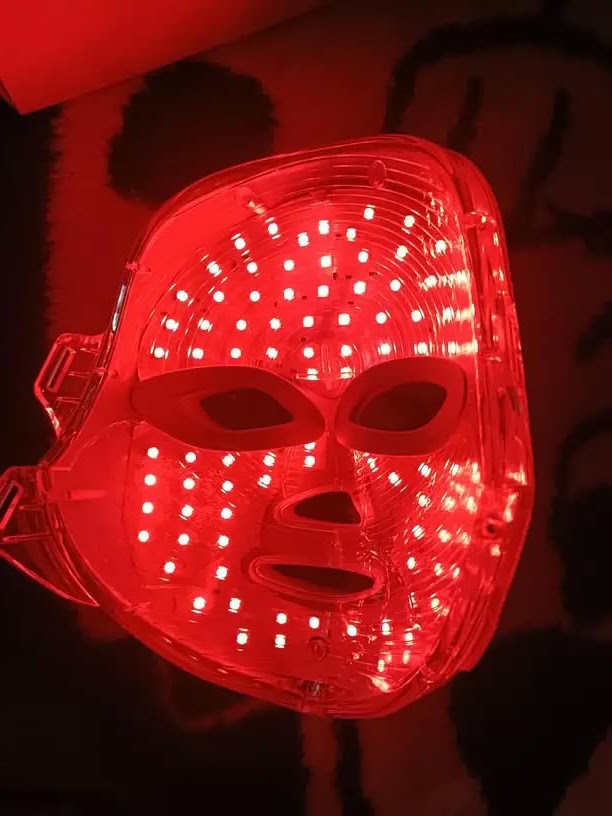 Lichttherapie-LED-Gesichtsmaske, 7-Farben-Lichtbehandlung, 90 LED-Perlen, wiederaufladbar über USB