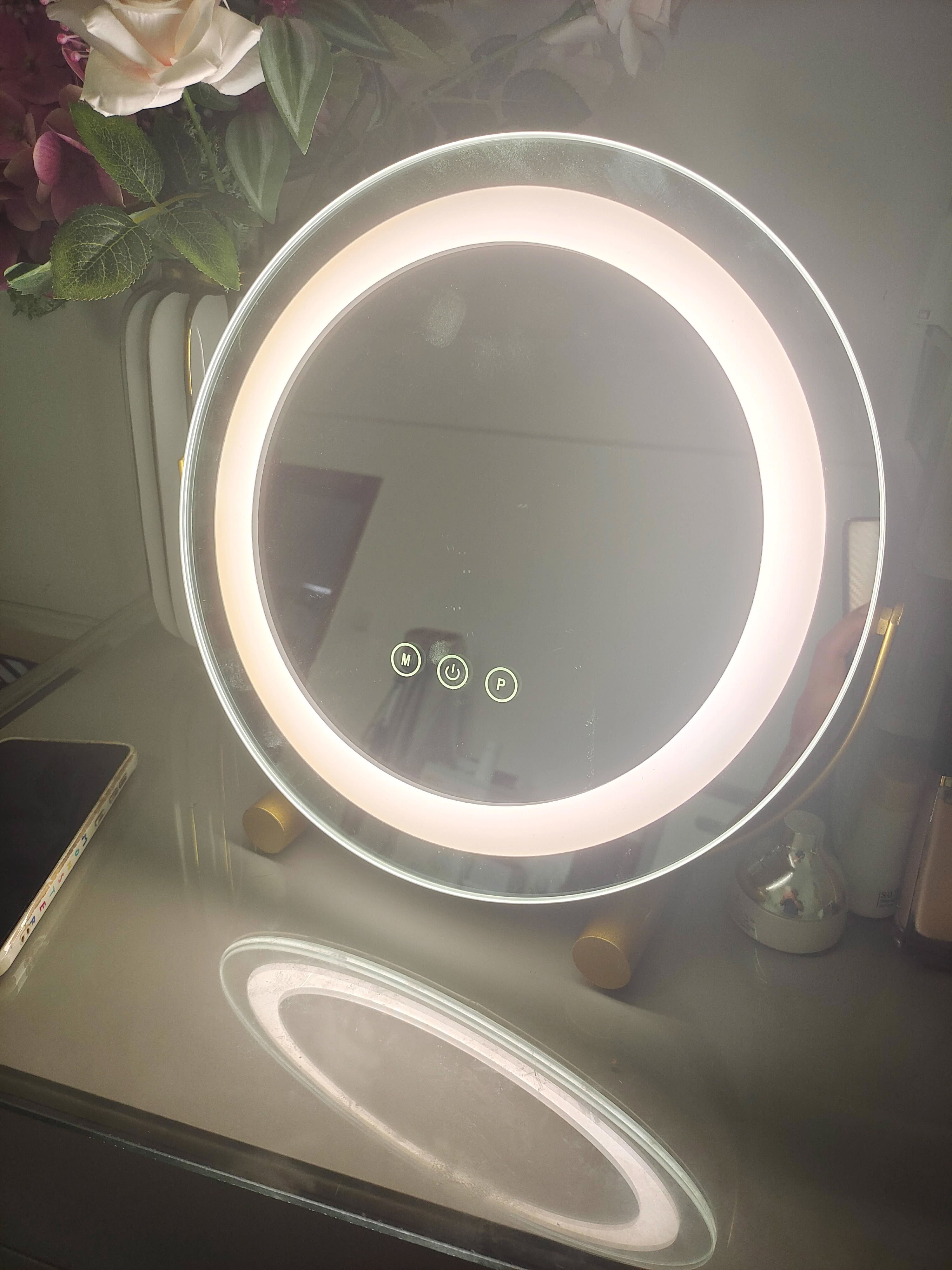 Rund LED Kosmetikspiegel 50cm/20" Groß für Schlafzimmertisch, Intelligente Berührung, 3 Lichtmodi, Einstellbare Helligkeit, 360° Drehung, EU Plug, Gold