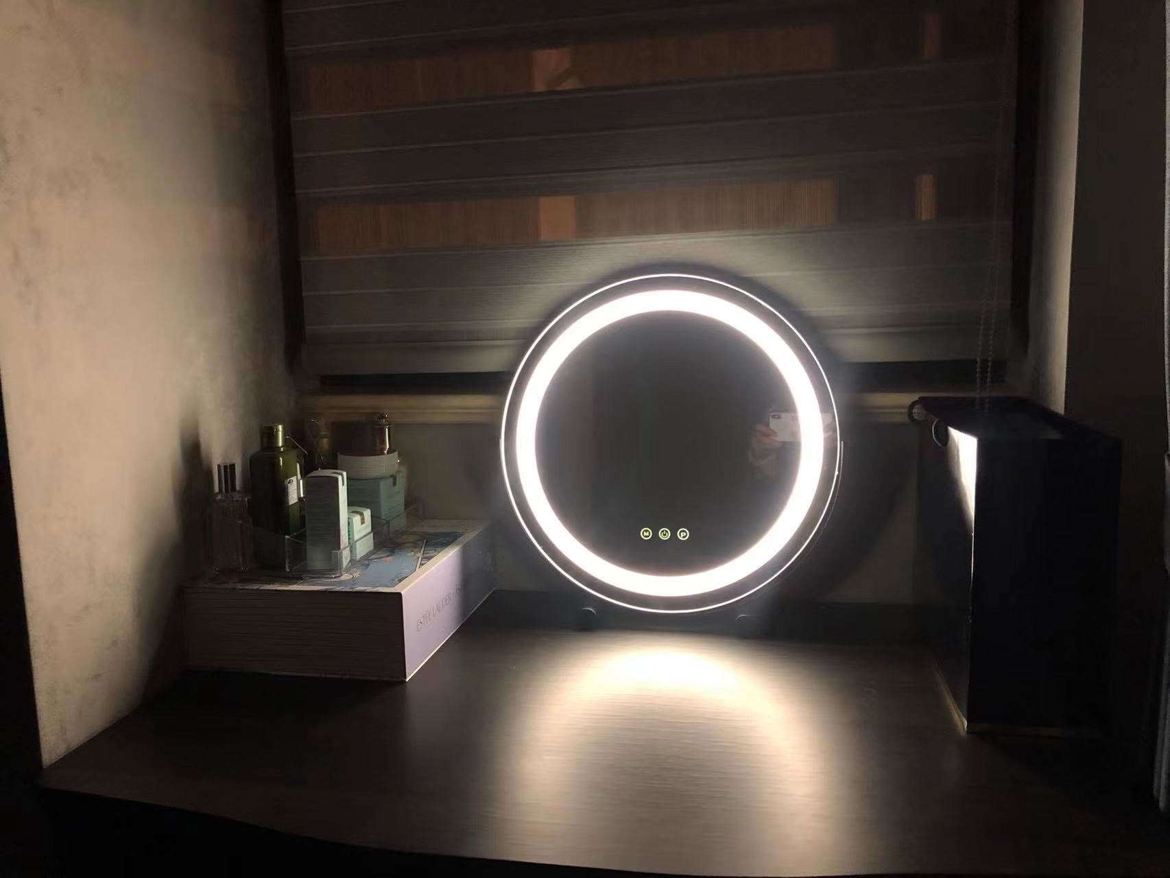 Rund LED Kosmetikspiegel 50cm/20" Groß für Schlafzimmertisch, Intelligente Berührung, 3 Lichtmodi, Einstellbare Helligkeit, 360° Drehung, EU Plug, Gold