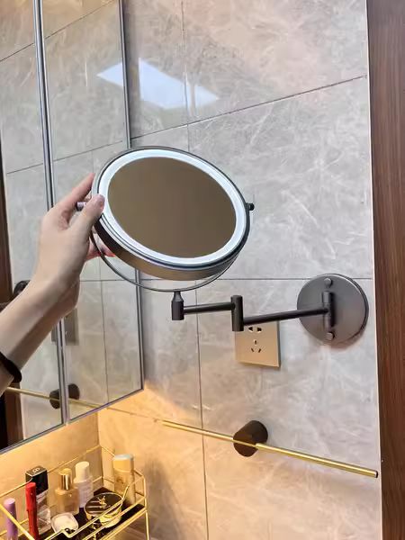 1X/10X Wandmontierter Schminkspiegel, 8" Doppelseitiger Kosmetikspiegel für Badezimmer, 360 Drehbar, Ausziehbar, Intelligente Berührung, Wiederaufladbar über USB