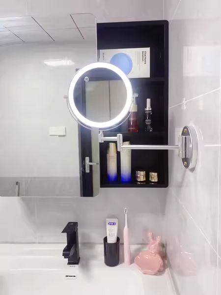1X/10X Wandmontierter Schminkspiegel, 8" Doppelseitiger Kosmetikspiegel für Badezimmer, 360 Drehbar, Ausziehbar, Intelligente Berührung, Wiederaufladbar über USB