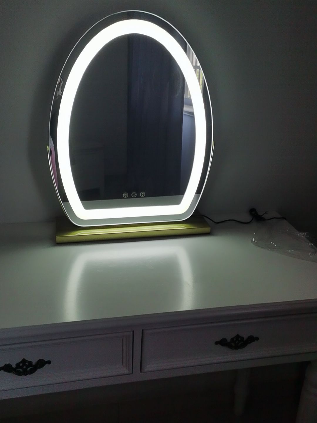 Oval Schminkspiegel mit LED Streifen, 40*50cm Groß, Intelligente Berührung, 360 Drehung, 3 Farben Mode, Einstellbare Helligkeit, EU Plug, Schwarz