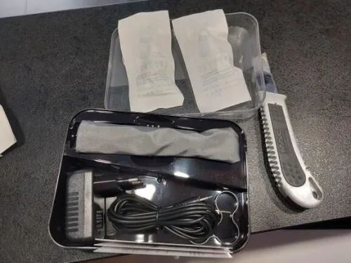 Umfangreiches Set schön verstaut alles in einer Box. Nadeln Aufsätze Stift mit Hülle.