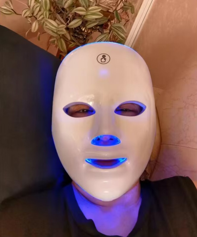 Lichttherapie-LED-Gesichtsmaske, 7-Farben-Lichtbehandlung, 90 LED-Perlen, wiederaufladbar über USB