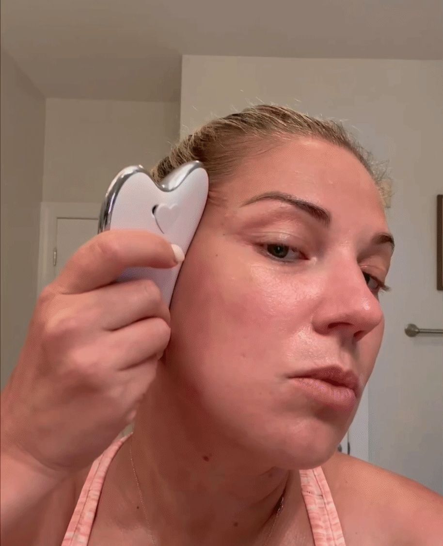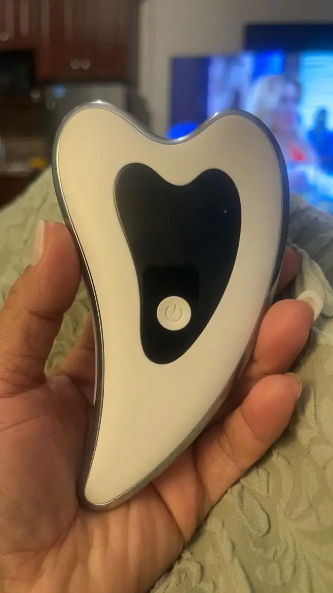 Ich kann nicht glauben, wie wunderbar sich mein Gesicht mit diesem Werkzeug anfühlt. Es ist ähnlich einfach zu verwenden wie der Gua Sha-Stein, hat aber rotes und blaues Licht sowie einen warmen Massager.