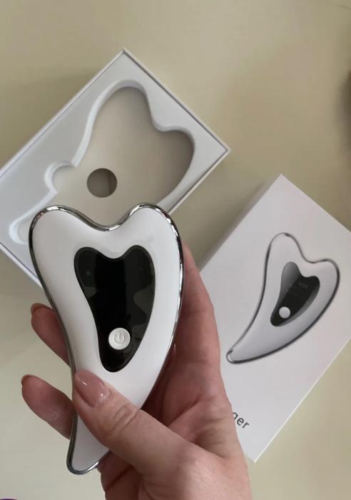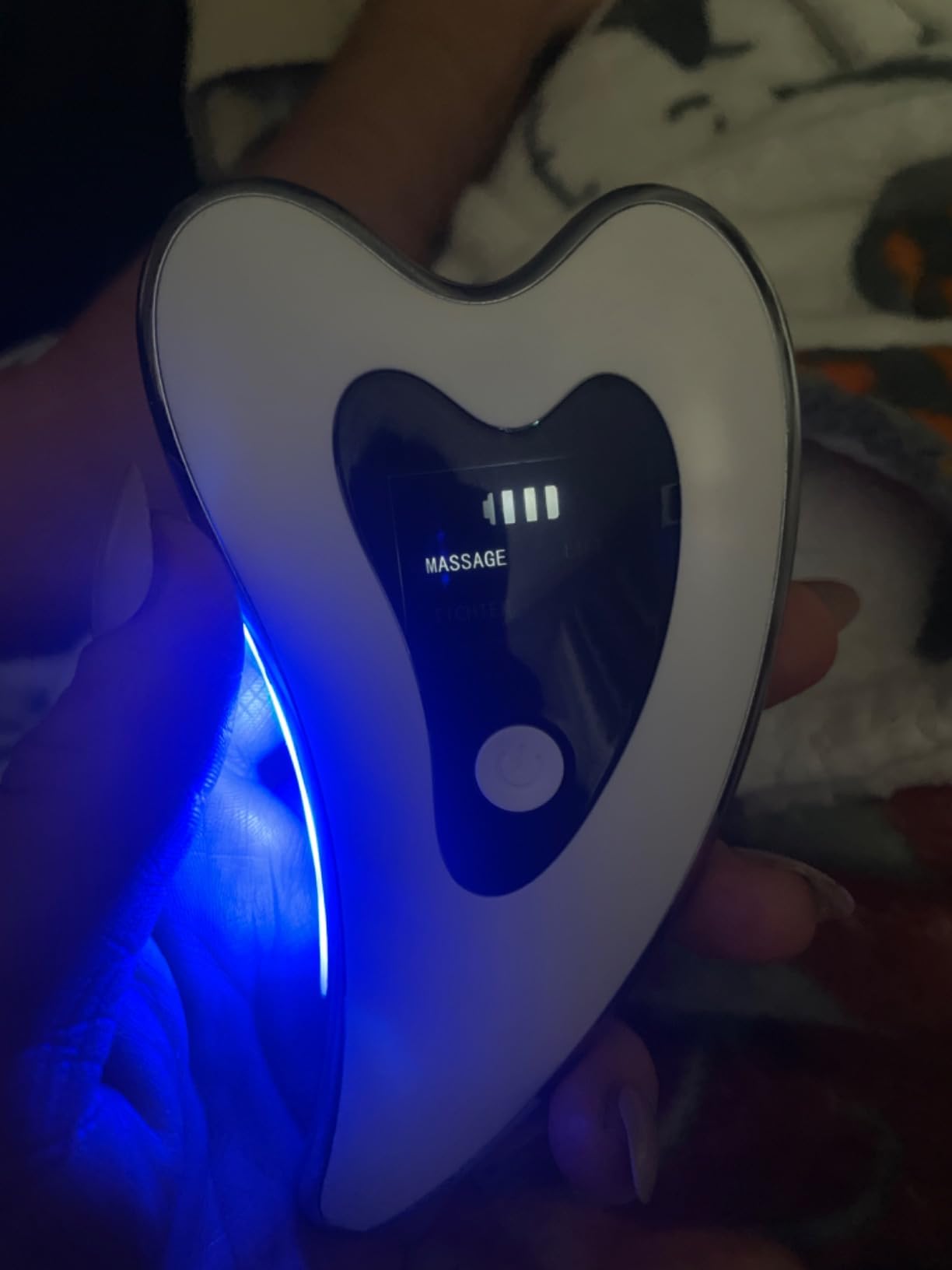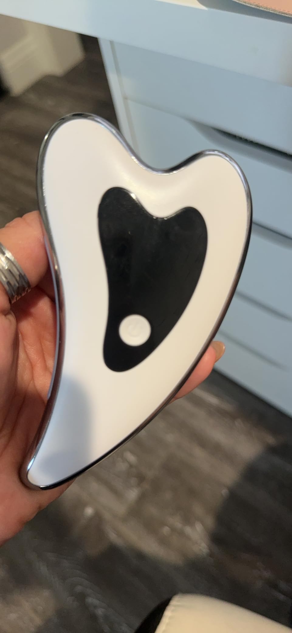 Ich liebe es!!! Ich benutze Gua-Sha seit Jahren und finde es toll, dass es eine ähnliche Form wie das Jadewerkzeug hat. Damit lässt sich die Kieferpartie viel leichter formen. Ich habe in der Vergangenheit andere elektronische Modelle verwendet, aber dieses ist viel besser geeignet, um das Gesicht zu konturieren.