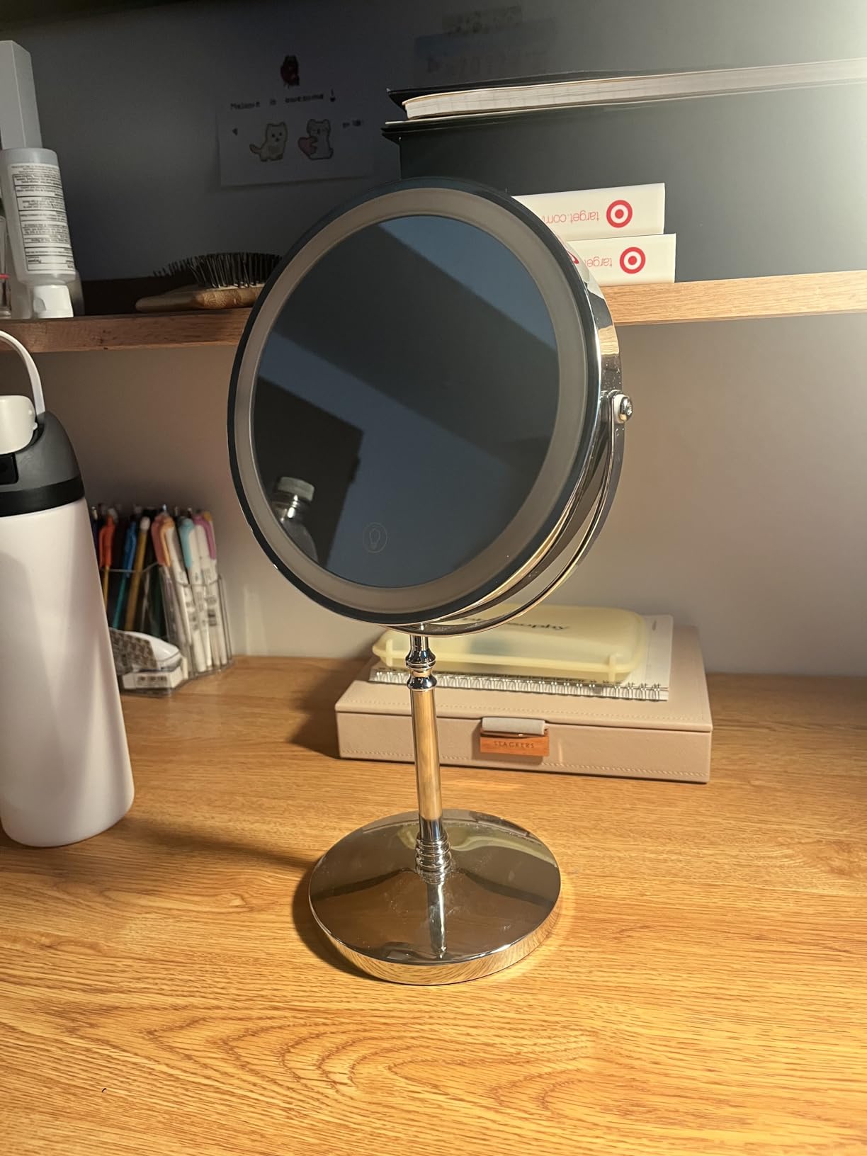 Ich liebe ihn so sehr, dass ich meinen anderen Spiegel nicht mehr benutze. Die Größe und das Licht sind perfekt für das tägliche Make-up sowohl für das ganze Gesicht als auch für die Augendetails