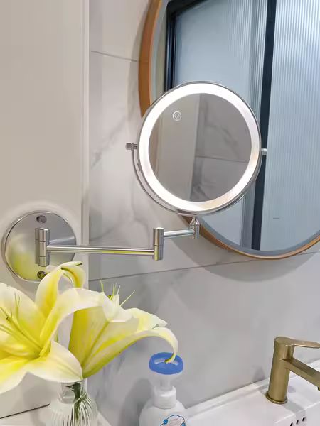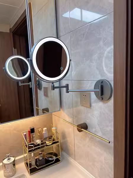 1X/10X Wandmontierter Schminkspiegel, 8" Doppelseitiger Kosmetikspiegel für Badezimmer, 360 Drehbar, Ausziehbar, Intelligente Berührung, Wiederaufladbar über USB