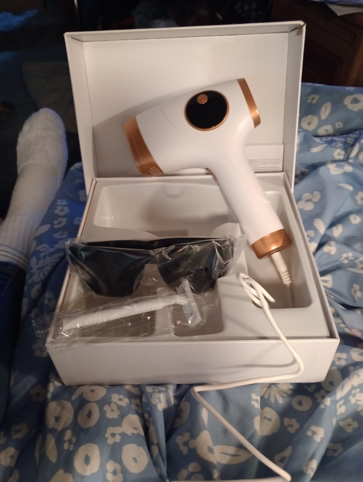Das Gerät kam neu verpackt, Anleitung war einfach. Ich startete mit der niedrigsten Stufe und steigerte bis Stufe 5 – gut auszuhalten. Zuerst habe ich meine Füße behandelt, und schon nach der ersten Anwendung waren die Haare feiner oder weg. An den Händen hat es 2–3 Sitzungen gebraucht, aber auch dort war das Ergebnis sichtbar. Ich war begeistert! Ich habe später auch einen Teil meines Arms behandelt – der Unterschied zum unbehandelten Bereich war deutlich.