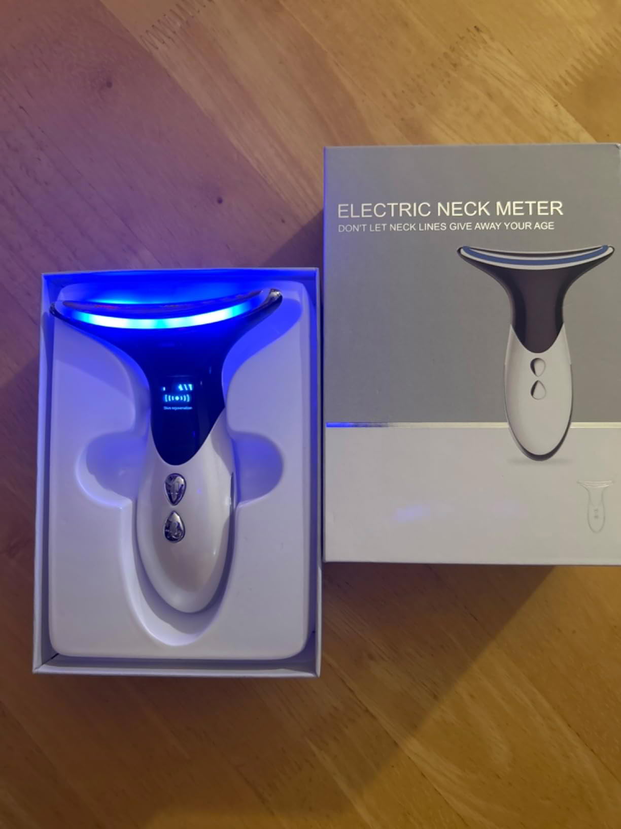 EMS Nacken Massagegerät, Elektrisch Beheizt, für Vibrationsfalten, Straffung, 7 Farben Modus, USB Wiederaufladbar