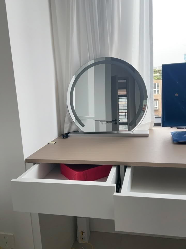 Der Spiegel ist ein echter Blickfang auf meinem Schminktisch. Das Licht ist sanft und angenehm