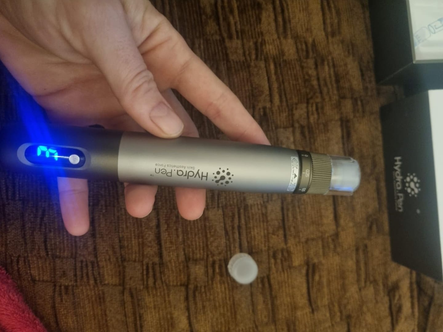 Ich liebe diesen Stift, weil er kabellos ist und man das Serum in die Mikronadeln geben kann. Sie müssen sehr dünn sein, um herauszukommen, aber sie funktionieren großartig.