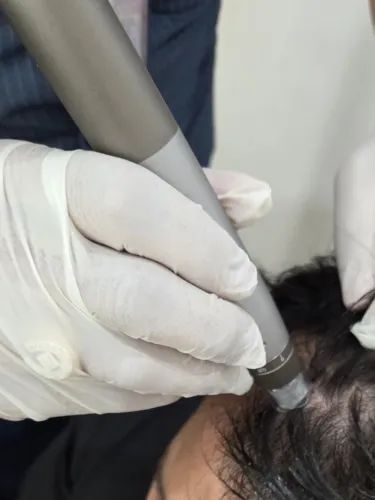 Das stiftähnliche Gerät hat am Ende winzige Nadeln, die die Haut durchstechen und Falten glätten und das Haarwachstum dort fördern, wo es nötig ist. Zu meiner Überraschung hat es gut funktioniert und jetzt frage ich mich, ob ich mir selbst eins zulegen muss, um die kleinen Stellen zu verschließen, wo mein Bart nicht wachsen will.