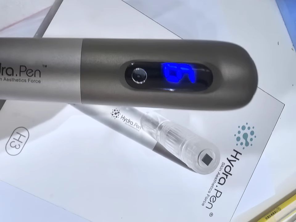Ich wollte Micro Needling schon seit einiger Zeit ausprobieren, da es angeblich so viele Vorteile bietet. Dieser Dr. Pen Micro Needling Pen ist wiederaufladbar und wird mit einem wirklich langen Ladekabel geliefert, was eine nette Abwechslung ist. Er kann kabellos oder an die Stromquelle angeschlossen verwendet werden. Er wird mit einer kleinen Abdeckung für den Handstift und 5 sterilen Nadelpackungen zum Einmalgebrauch (4 verschiedene Nadelgrößen) geliefert. Der Stift selbst ist schön schlank, nicht schwer und daher sehr angenehm zu halten und zu verwenden. Der Stift hat 6 verschiedene Geschwindigkeitseinstellungen von 1-6, die auf dem Display angezeigt werden. Die Nadeltiefe ist von 0 mm bis 2,5 mm vollständig einstellbar.