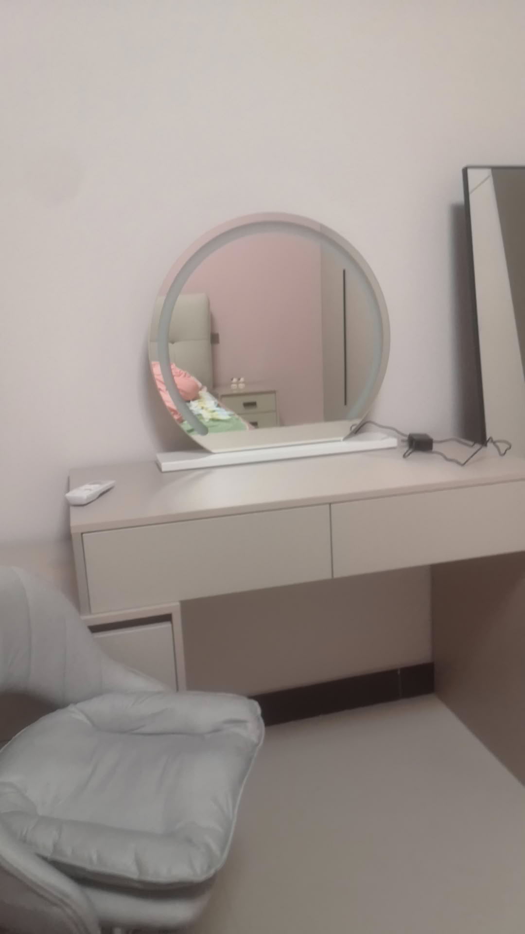 Ich war überrascht, wie gut es mir gefallen hat. Das Licht ist in den ersten Einstellungen nicht so stark, aber in der letzten Einstellung ist das Licht perfekt. Es sieht auf meinem Schminktisch wirklich gut aus, im Gegensatz zu einem typischen billigen beleuchteten Schminkspiegel. Ich wollte etwas, das hochwertig aussieht, damit ich mein gesamtes Gesicht aus der Ferne oder aus der Nähe sehen kann, und dieser Spiegel ist großartig