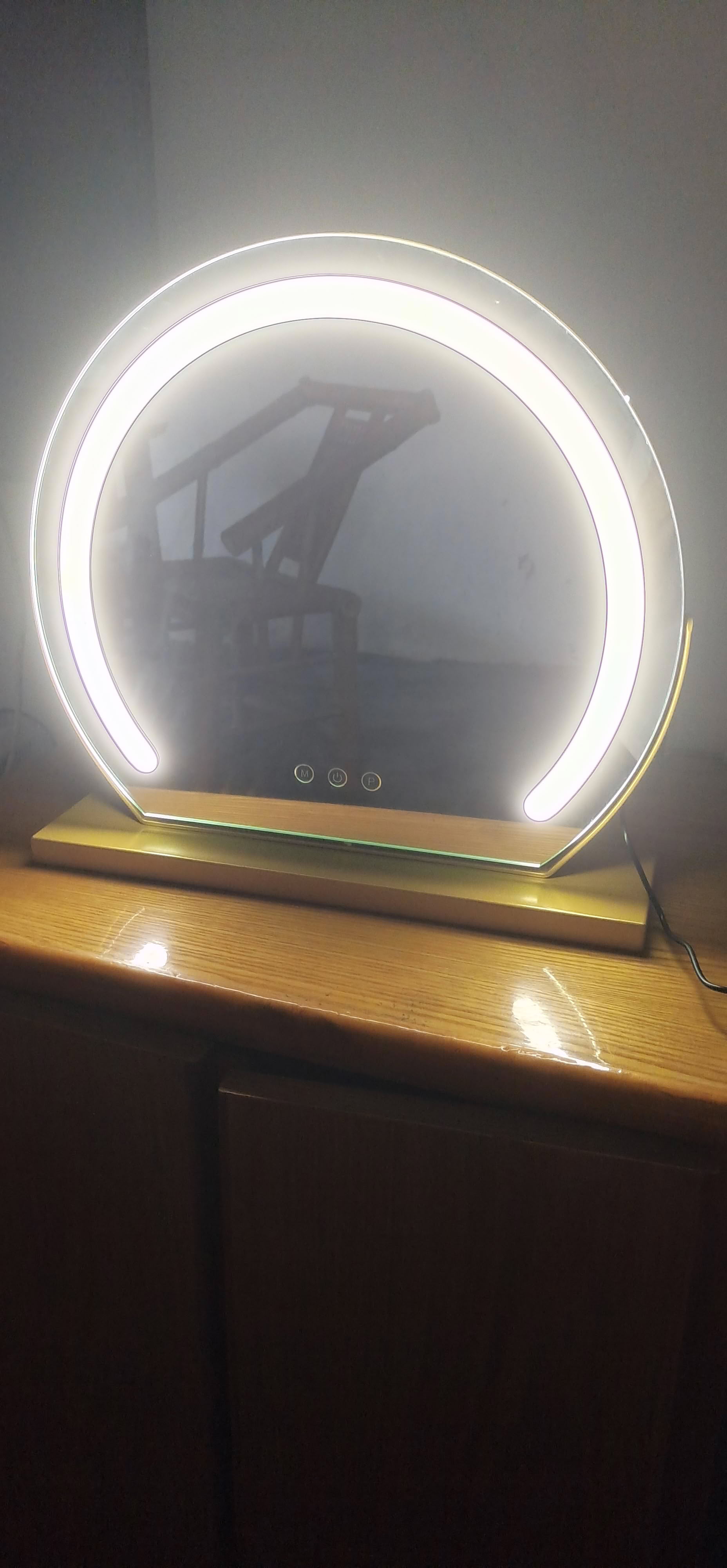 12"/30 cm großer, runder Kosmetikspiegel für Frisiertisch und Schlafzimmer, drehbar, 3 Lichtmodi, dimmbare Helligkeit per LED-Streifen, Steckernetzteil, weißer Ständer