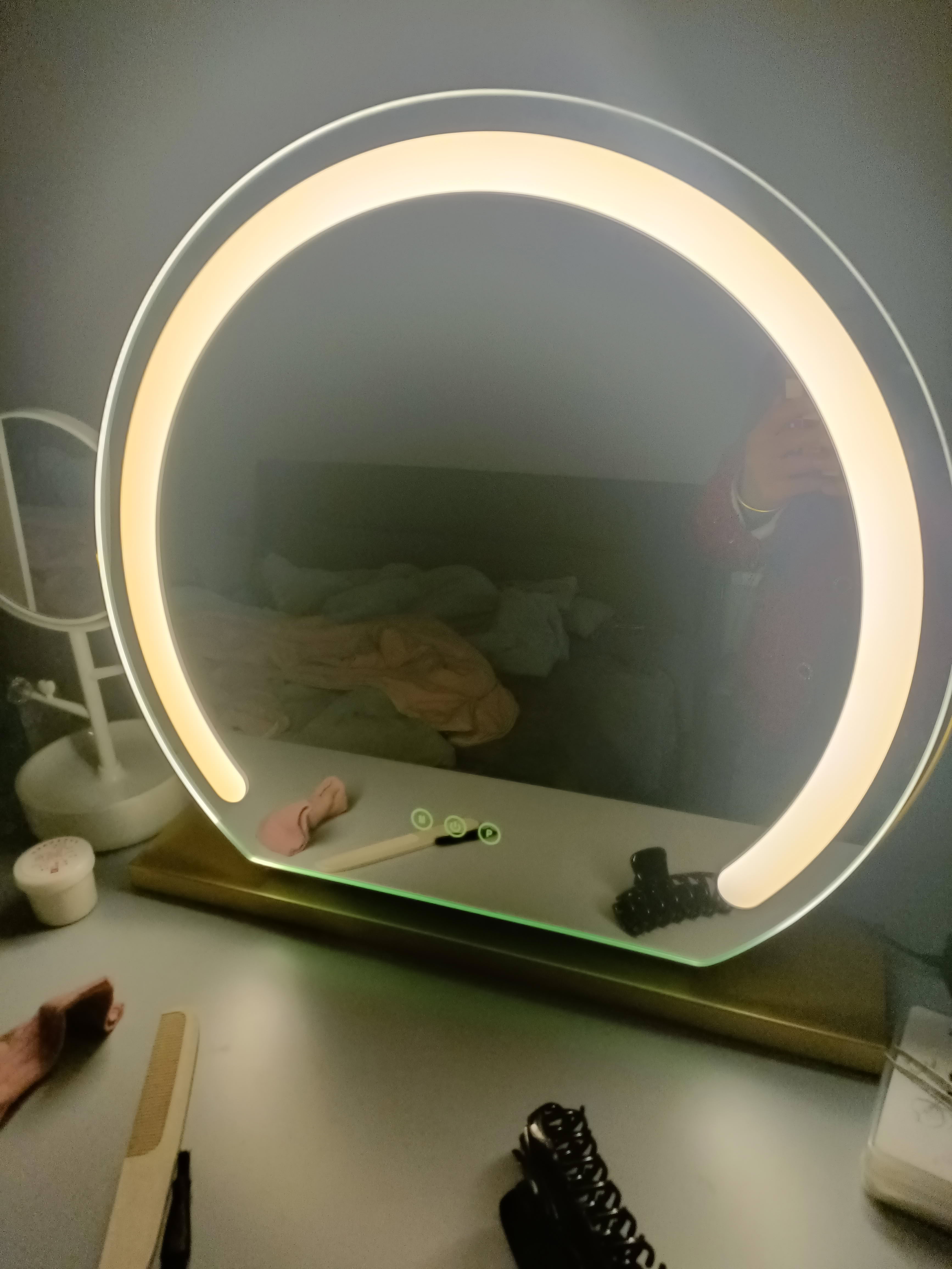 Der Spiegel ist ein echter Blickfang auf meinem Schminktisch. Das Licht ist sanft und angenehm