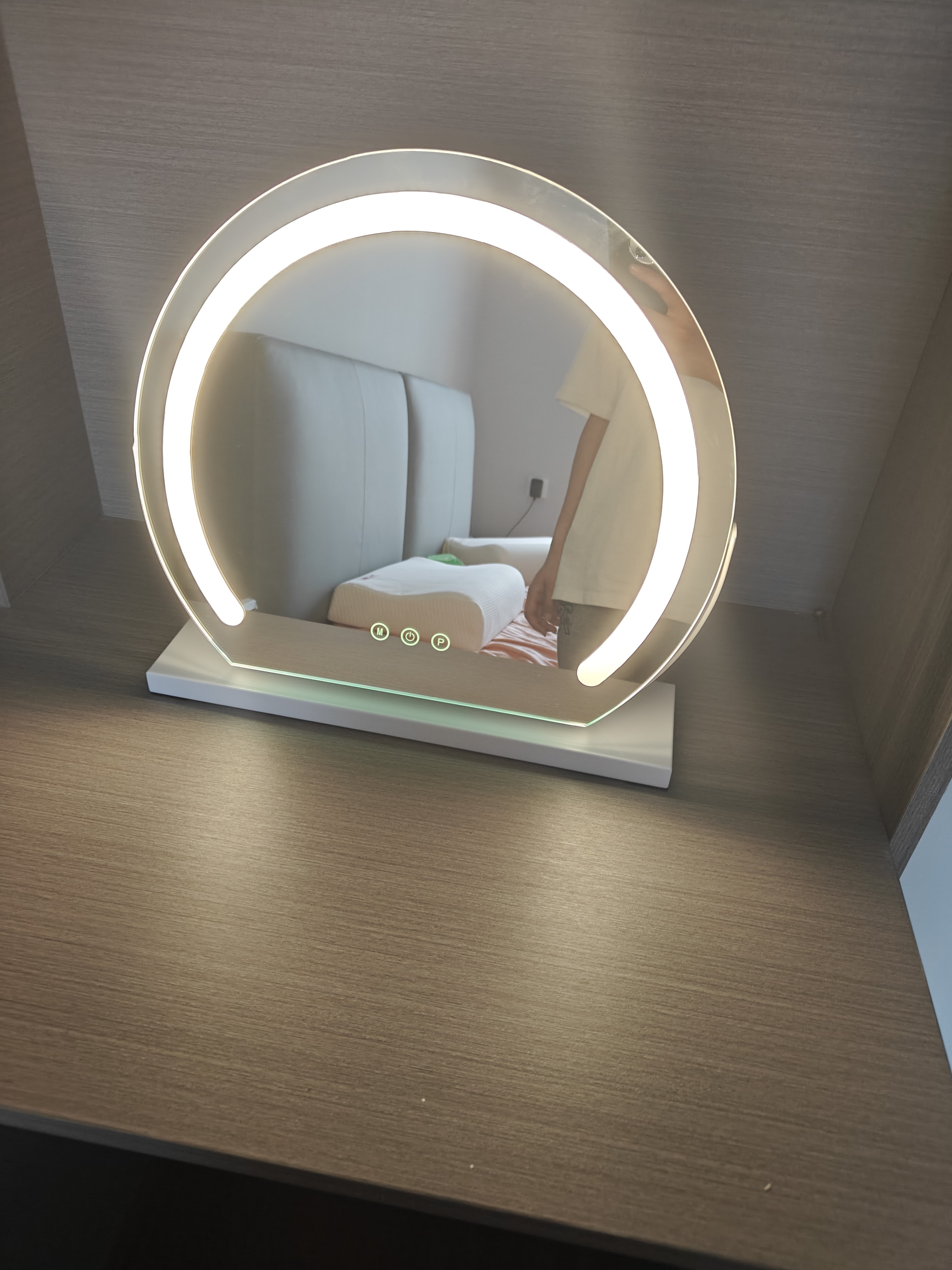 Heller und schöner Spiegel! Die LED-Leuchten sind fantastisch und die Größe ist perfekt für die Vorbereitungen. Ich bin sehr zufrieden mit meinem Kauf.