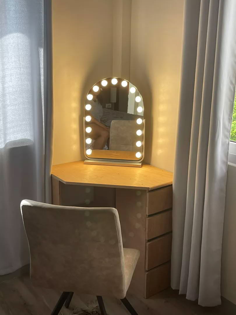 Dies ist ein gut beleuchteter und lustiger Schminkspiegel. Meine Tochter liebt ihn und er war perfekt für ihr Zimmer im Studentenwohnheim.