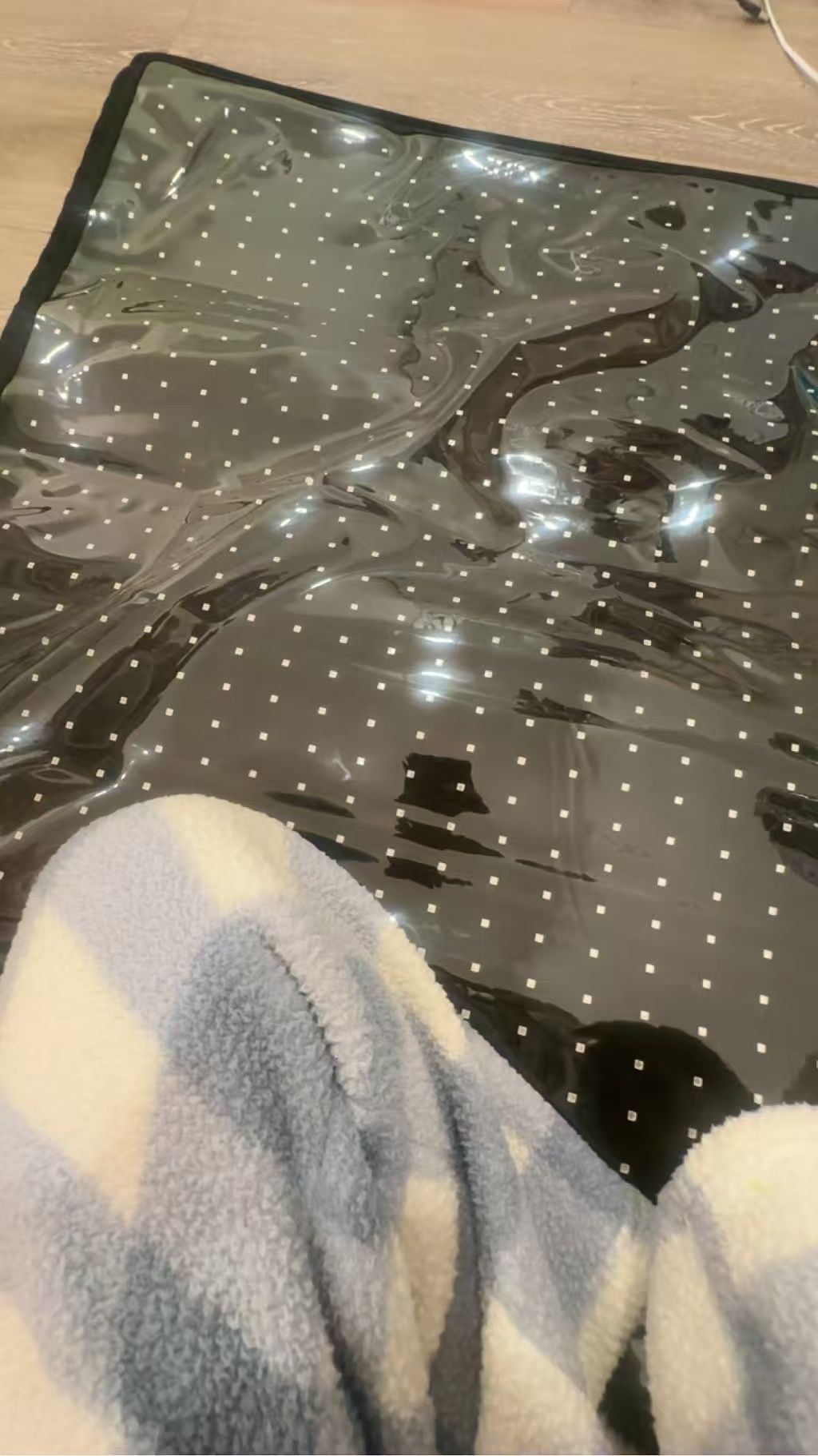 Ich habe ein Rotlichtpanel verwendet. Das bringt es auf die nächste Stufe. Ich liebe es, mich hinzulegen und zu entspannen, während ich die Vorteile des Rotlichts genieße. Die Matte wird überhaupt nicht heiß und ist sehr bequem.