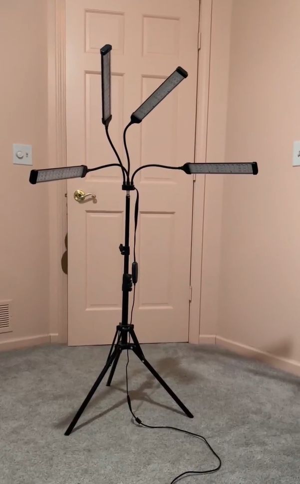 Die vier Leuchten und die biegsamen Arme machen es wirklich einfach, je nach Bedarf einen bestimmten oder größeren Bereich abzudecken. Das Stativ ist robust und gut verarbeitet. Ich habe nichts an diesem Artikel auszusetzen. Kann ich nur empfehlen.