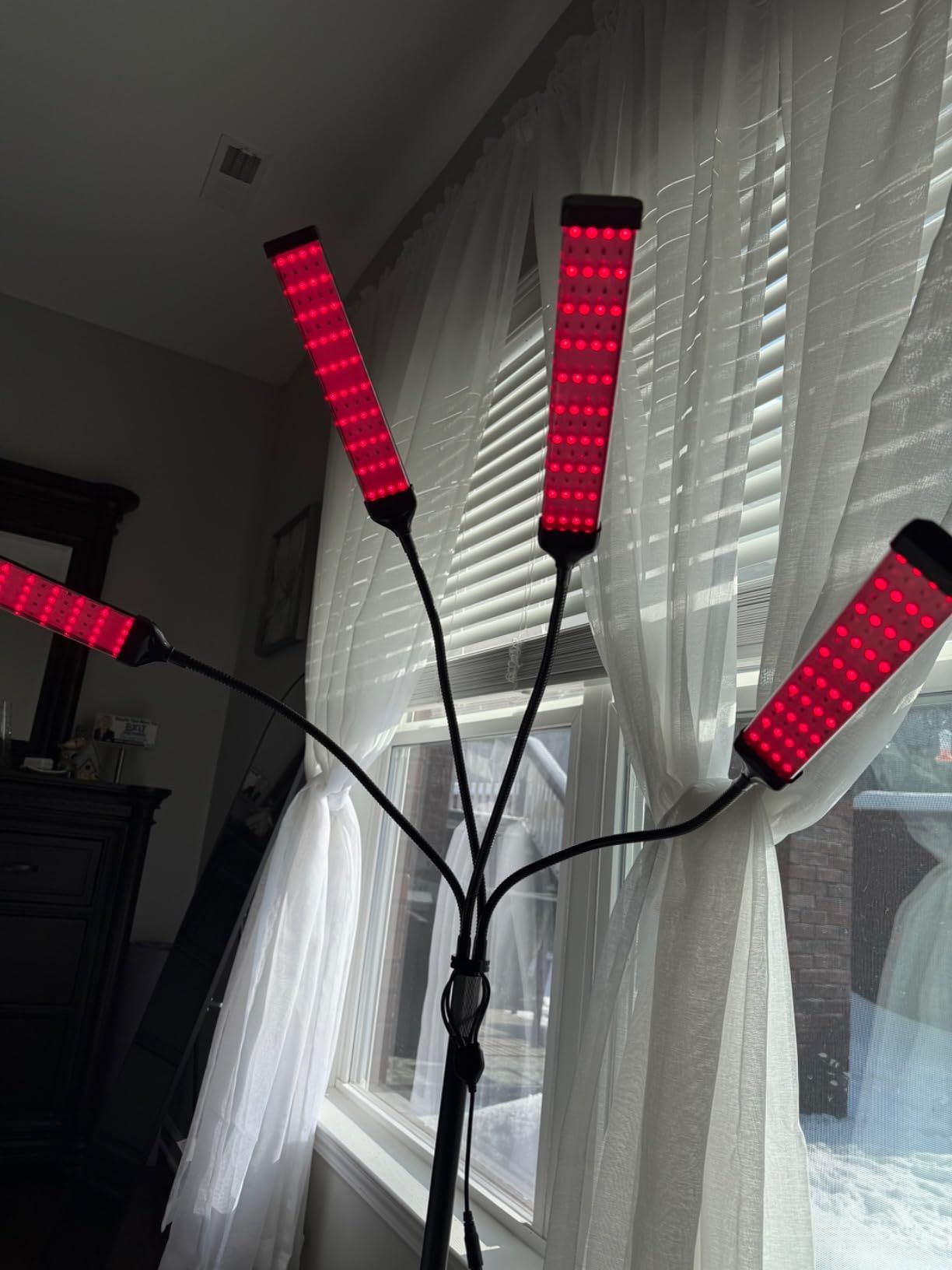 Das Stativ ist hochwertig und gut verarbeitet – ich bin beeindruckt. Die vier einzelnen Lichter sind so konzipiert, dass sie eine große Fläche abdecken. Sie lassen sich in vielerlei Hinsicht einstellen: Höhe, Winkel und Lichtintensität. Damit kann man problemlos den ganzen Körper im Liegen abdecken. Mit den Timer-Einstellungen könnte man sogar ein Nickerchen machen. Der Controller ist einfach zu bedienen. Ich glaube, dies könnte mein Lieblingsgerät für Rotlichttherapie werden