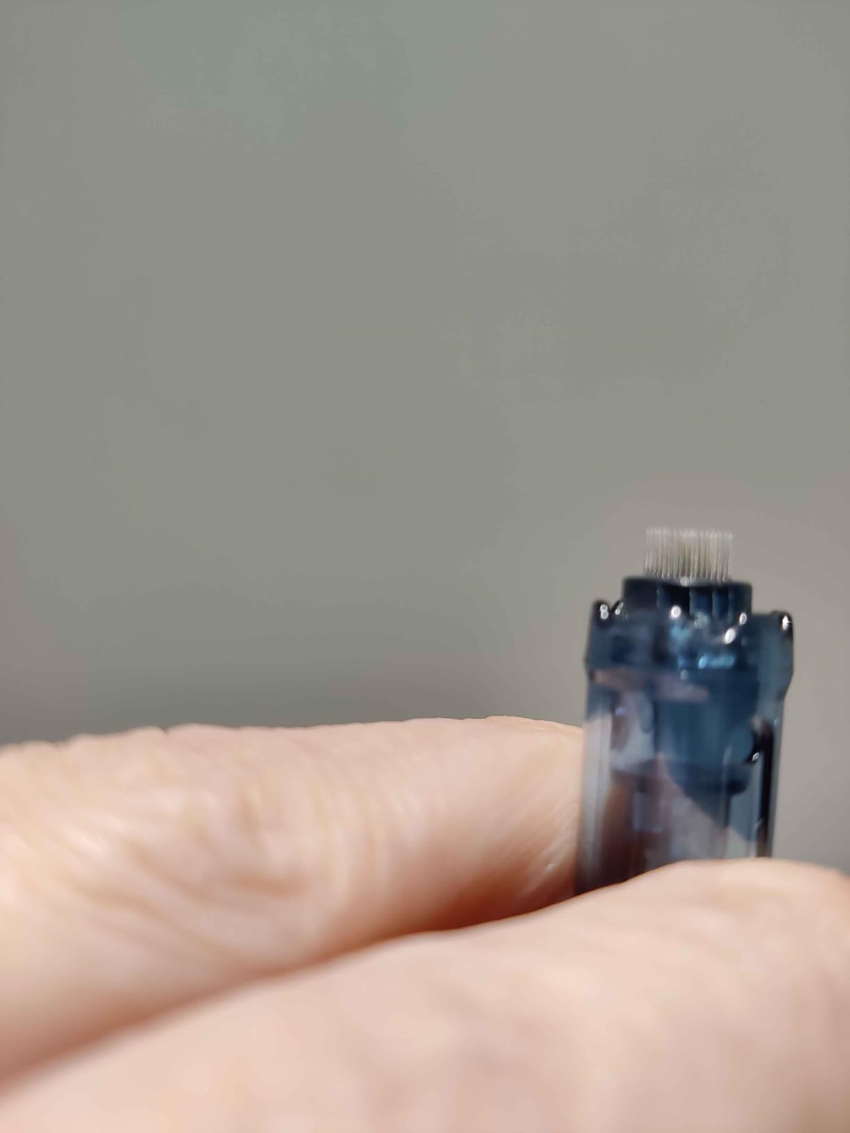 Der Stift ist komplett kabellos und wird über ein USB-C-Kabel aufgeladen. Er verfügt über eine magnetische Basis, die die Stromzufuhr unterbricht, sobald man den Stift ablegt – praktisch, wenn man während der Behandlung beide Hände frei haben möchte. Die Eindringtiefe lässt sich zwischen 0,25 und 2,5 mm einstellen und bietet somit vielfältige Möglichkeiten. Anfängern empfehle ich, mit 0,25 mm zu beginnen.